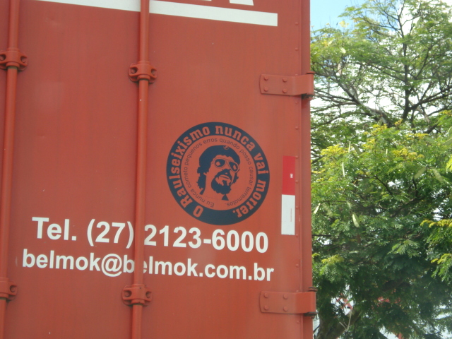 E a estrada seguia, no norte do Espírito Santo há retas intermináveis na BR101, trechos com eucaliptos e outros com muita cana-de-açúcar. Passamos por Aracruz e Linhares. Em linhares encontramos esse caminhão dirigido por um cara que certamente é do time que grita “Toca Raul!”